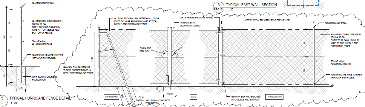 Site 3: 547m of 1800mm chainlink, 1x vehicle gates, posts spacing Max 3m, 9 corners x bracing in both directions