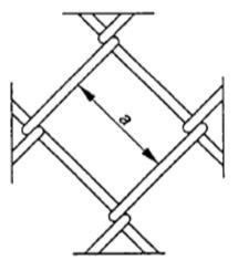 Fencing manufactures from the interlocking of steel wire helices which provide approximately square mesh. See figure below.