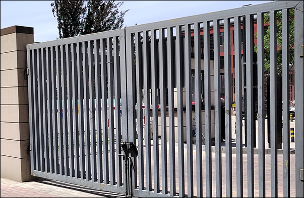 Galvanized Steel Picket Tubular Fence Panels of 8'w x 6'- 10" H and 2 sliding gates, 1 of 25'- 0" W x 6'- 10" H and another one of 16'-0" W x 6'-10" H
