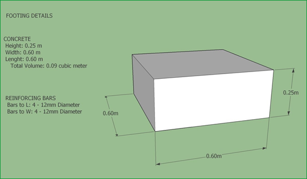 The typical concrete footing reinforced with rabar, for fence, details 3D Model