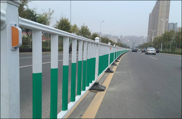 Vinyl coated pipe guard rails in white and green for road ways safety
