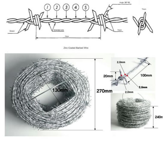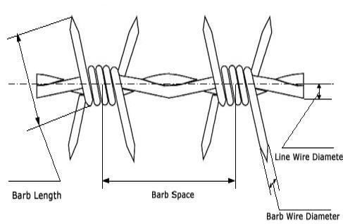 • Barbed wire diameter of 2.0mm+/- 0.127mm x Barb spacing of 12.7cm +/-2.5cm