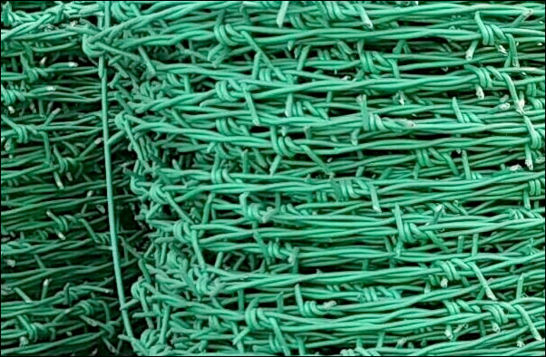 Barbed Wire is a traditional protection fencing material with steel wires twisted with a system of constant torsion, usually in multiple strands, with barb prongs interlaced in the wires.